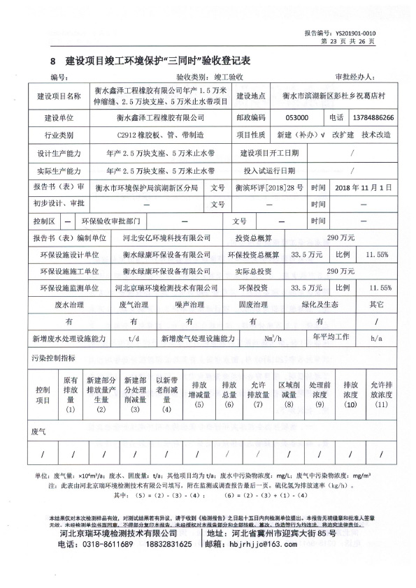 <![CDATA[衡水鑫泽工程橡胶有限公司竣工环境验收报告]]> http://www.hsxinze.com/news_57.html 衡水鑫泽工程橡胶有限公司 2019-2-27 1.衡水鑫泽工程橡胶有限公司竣工环境验收报告.pdf