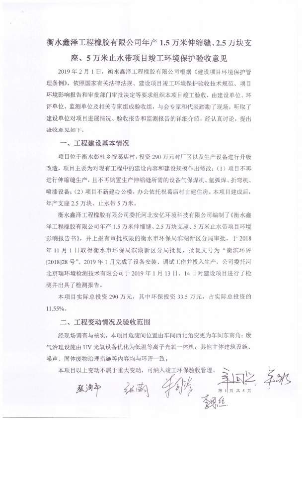 <![CDATA[衡水鑫泽工程橡胶有限公司生产1.5万米伸缩缝、2.5万块支座、5万米止水带项目竣工环境保护验收意见]]> http://www.hsxinze.com/news_59.html 衡水鑫泽工程橡胶有限公司 2019-2-27